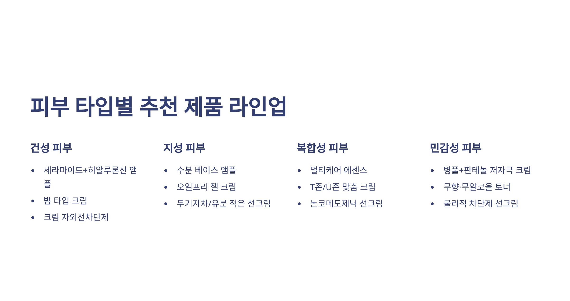🧴 피부 타입별 추천 제품 라인업 (예시)
